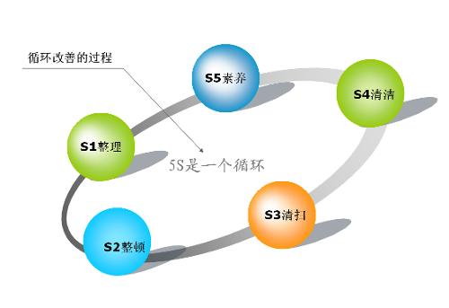 “5S”是一种比较成型先进的现场管理方式,其核心环节“整理”、“整顿”、“清扫”、“清洁”、“安全”五个词语,其日文的罗马拼音均为S,因此简称“5S”。推行5S管理,通过进行全面的整理、整顿、清扫,循序渐进,达到清洁,然后逐步深入,使每名员工具备良好的修养行为,彻底消除脏乱,对于创造令人满意的工作场所,带动全公司追求改善的氛围,激发全员参与工作的干劲,培养一批有企划能力,以及自主管理的干部和员工,具有很好的效果。