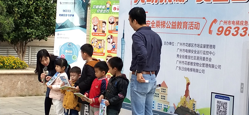 为进一步增强电梯应急处理能力,提高业主乘梯安全意识,2019年12月21日,在广州市花都区市场监督管理局的指导下,日创电梯与广州市电梯安全运行监控中心、秀全街雅宝社区居委会,花都雅宝物业管理有限公司在雅宝新城小区,共同举行了一场主题名为“文明乘梯,安全出行”的公益教育活动。